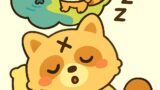 釣り竿とゼッケン7番を背負った、ほんわかたぬきです。