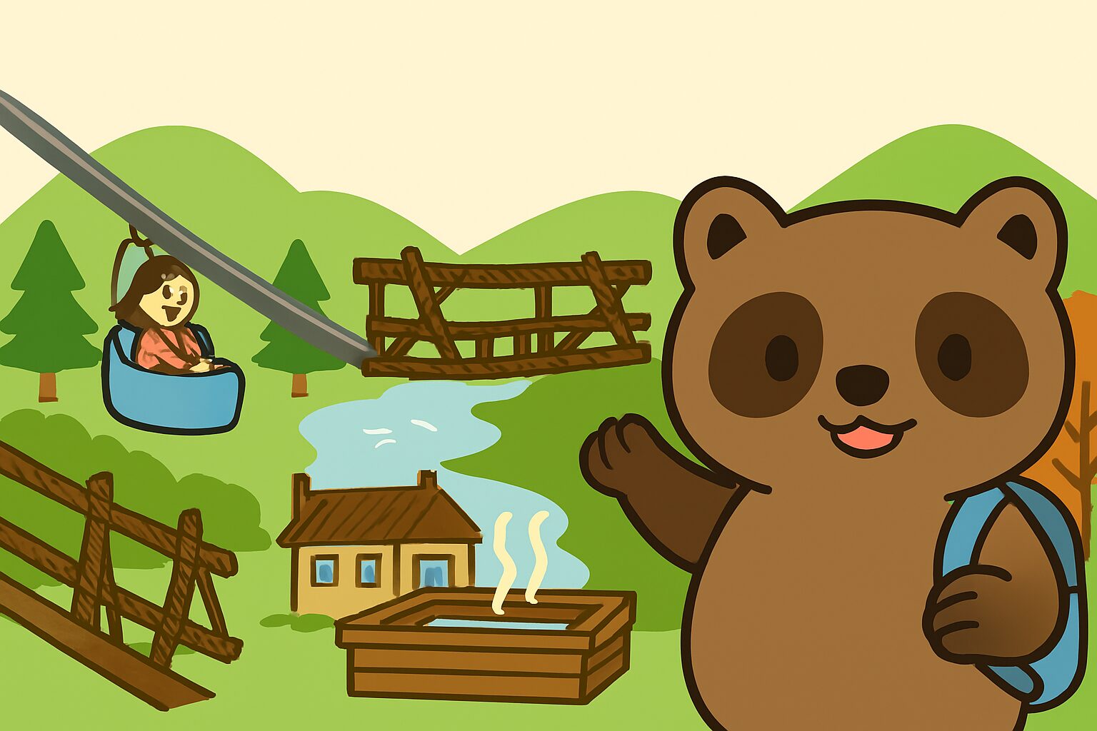 やあやあ〜! 釣りと競馬と温泉が大好きなたぬき(?)のばつまるだよ〜! 今日は、むんく一家が体験してきた祖谷(いや)観光のおすすめコースを、ぼくがナビゲートしちゃうよ!