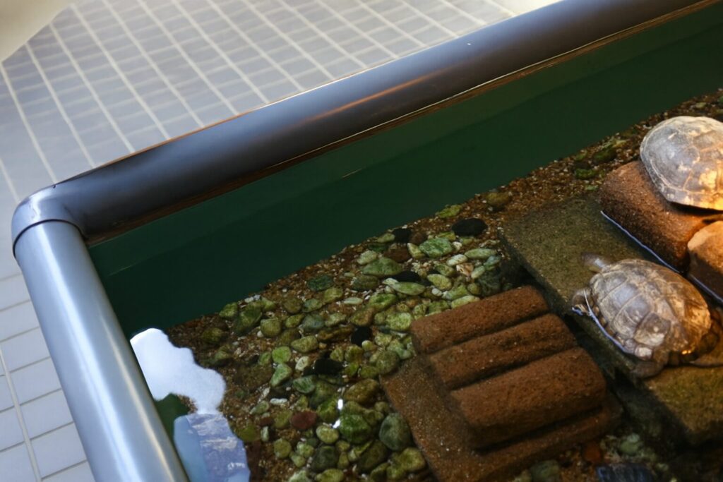 立派なウミガメたちよりも、子どもたちが夢中になったのは、家でも飼えそうな小さなカメでした。 じーっと睨めっこしていて、まったく動かないカメに話しかけたりしていました。