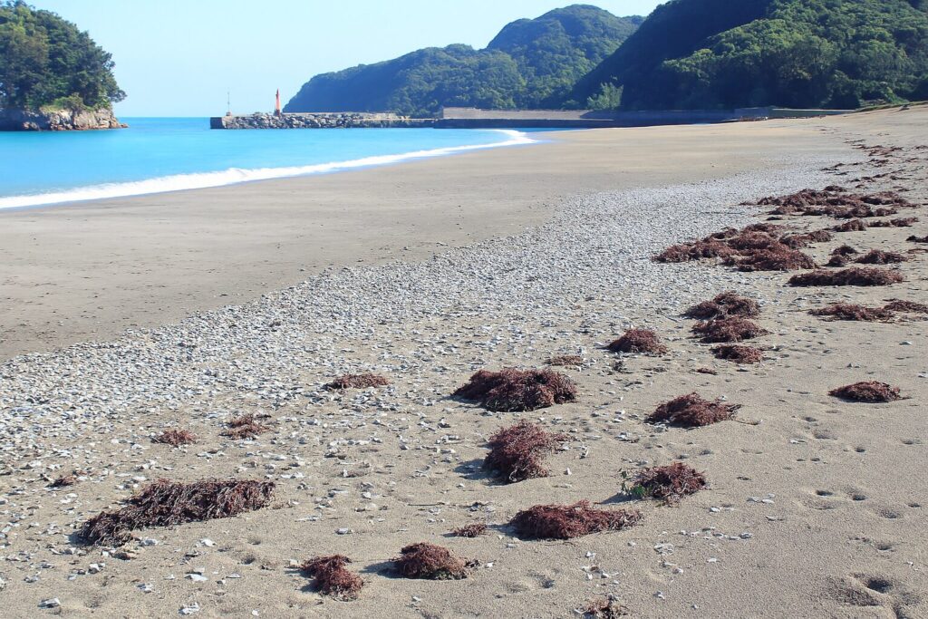建物のすぐ横には浜が広がっていて、「ここがウミガメの産卵場所なんだ」とワクワクしていました。 実際に写真も残っているのですが、案内板を読むと「最近は産卵に来ていません」と書かれていてびっくり。