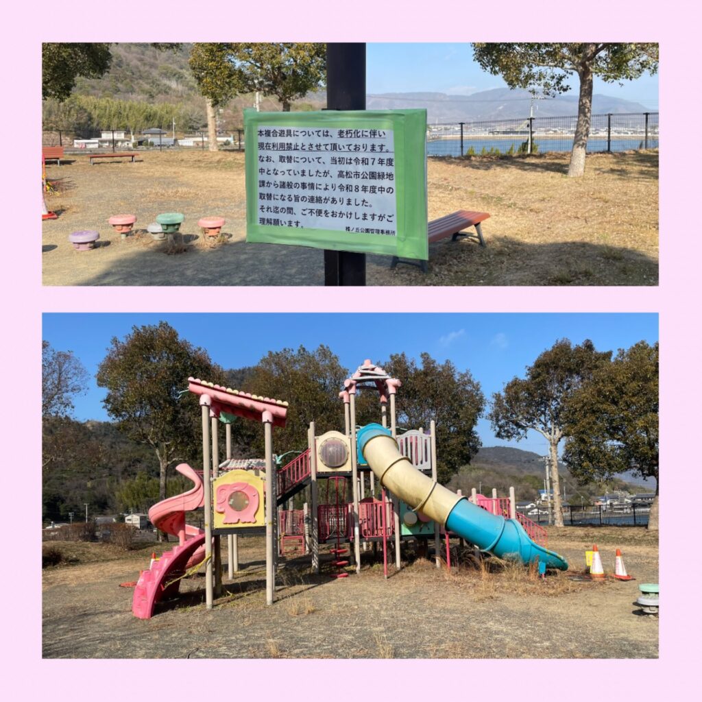橘ノ丘公園は、遊具は少なめながらも広々していて、のんびり過ごせる公園。 複合遊具が新しくなる予定なので、今後さらに楽しめる場所になりそうです。