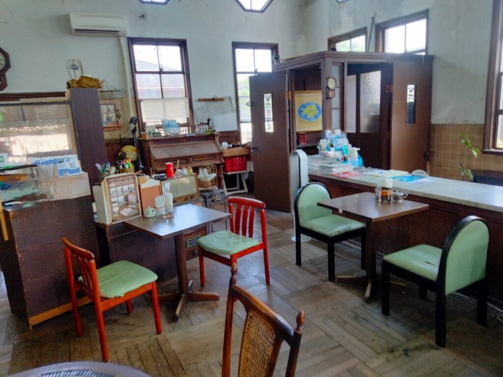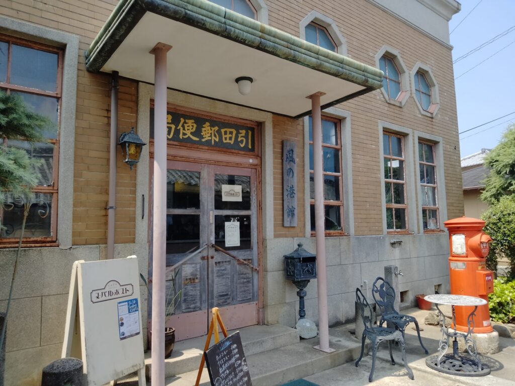 引田は古い街並みが魅力で、散策がとても気持ちいいエリア。 むんく家は旧引田郵便局のカフェ「ヌーベルポスト」でランチを利用。 レトロな雰囲気がそのまま残っていて、子どもも大人も落ち着ける空間でした。