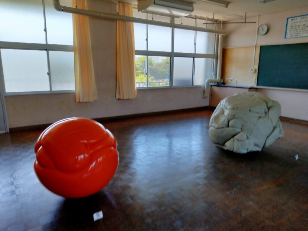 瀬居島は、沙弥島と橋でつながっていて、車で行ける“気軽な瀬戸芸スポット”でした。 2025年は瀬居中学校がメイン会場になっていて、展示数が多く、校舎の中を歩くだけでもしっかり楽しめる島でした。