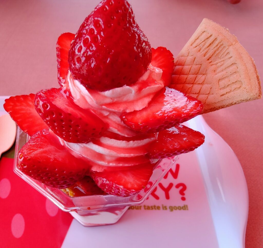 最後に食べたいちごパフェが、むんく家の心を救ってくれました。 とても美味しくて、疲れがふっと軽くなりました。