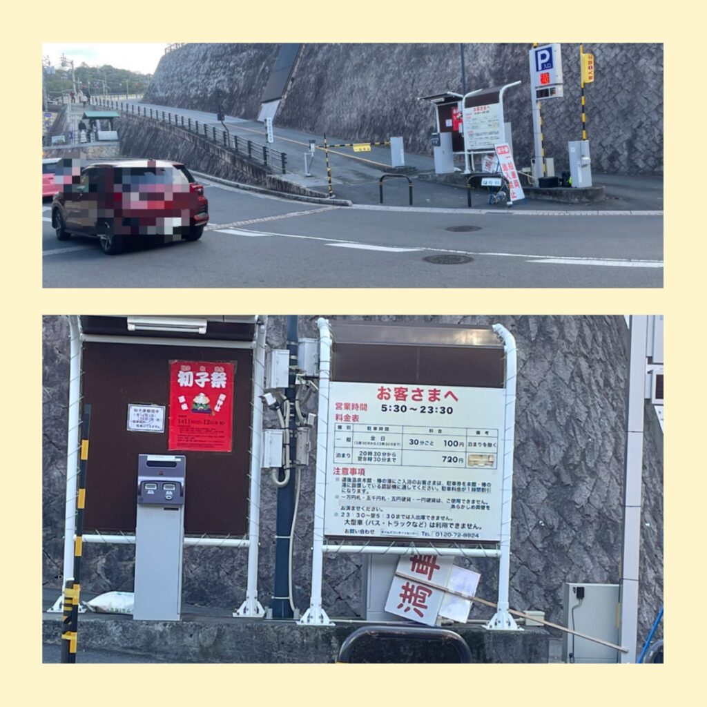 - 本館・椿の湯・飛鳥乃湯泉の利用で 最初の1時間無料※駐車券を車内に忘れないように