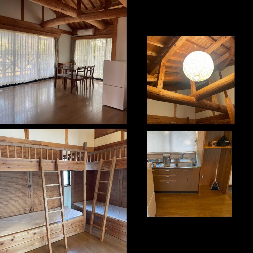 外観はよく見るキャビンって感じで、内装はロフトというよりは2段ベッドが2つあるって感じでした。子供たちは、やはり上で寝たいということでしたが、少し高さもあるので、初めは登り降りに少し怖がっていました。ポットがあるのは嬉しいですね。