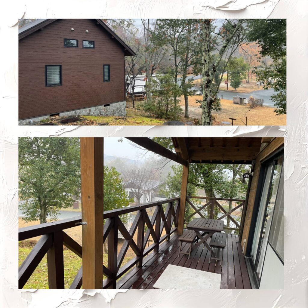 ちなみに朝の外はこんな感じ。少し霧がかってました。天気が良ければ、外でコーヒーでも飲みたいですね。