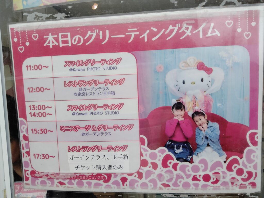 乙姫の衣装を着たキティちゃんと写真が撮れるグリーティングは、時間が決まっているので事前に公式サイトでチェックしておくのがおすすめ!