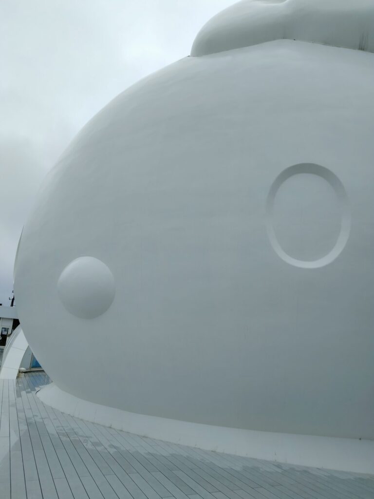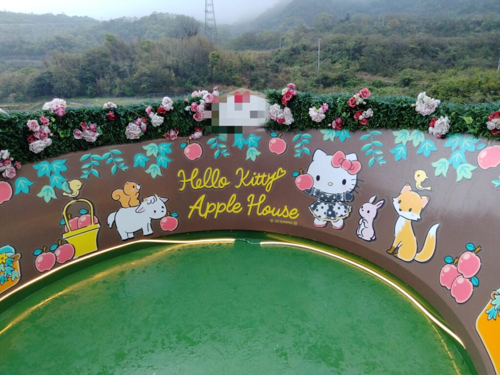 展望台からは大きなキティちゃんの顔が見えますが、すでに本物に会った後だったので、感動はやや薄めでした。 先にAPPLE HOUSEを見てからキティちゃんに会う方が、子どもたちの反応が良いかもしれません。