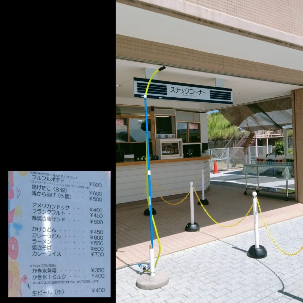 中に売店があります。お腹が空くのが主な原因でしょうが、子どもの時にプールで食べるご飯ってなんであんなに美味しく感じるんでしょうね。