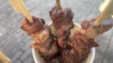 掴んだ後は、締めて串に刺して塩を振る工程があります。棒で脳天部分を叩くんですが、子ども達少しビビり気味。