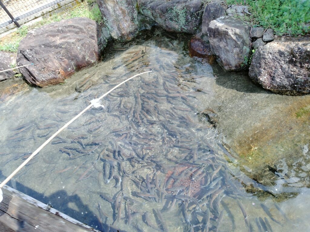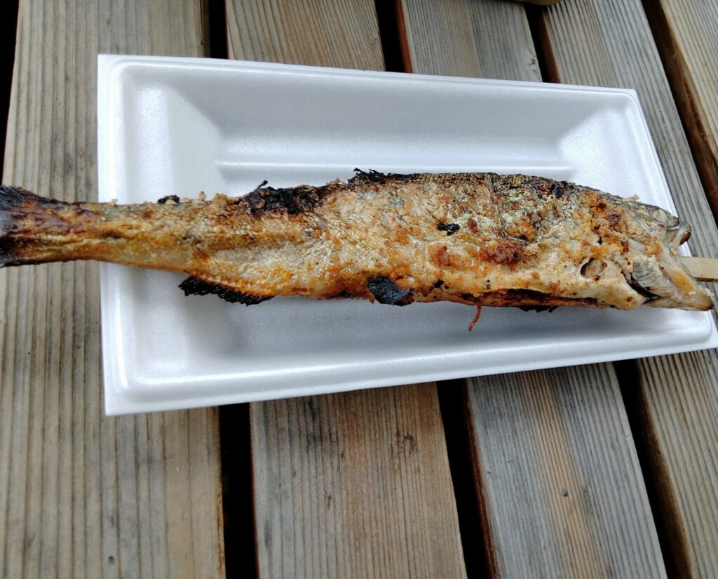 取ったアメゴはその場で焼いてくれて、すぐ食べられます。 自分で取った魚をそのまま食べる体験は、子どもにとって最強の思い出。
