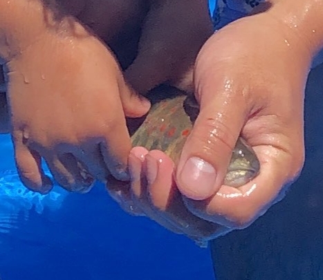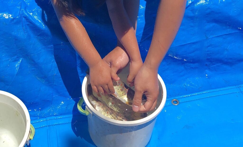 手でつかむタイプで、子どもたちが大興奮。 水の冷たさも相まって、キャーキャー言いながら楽しんでいました。