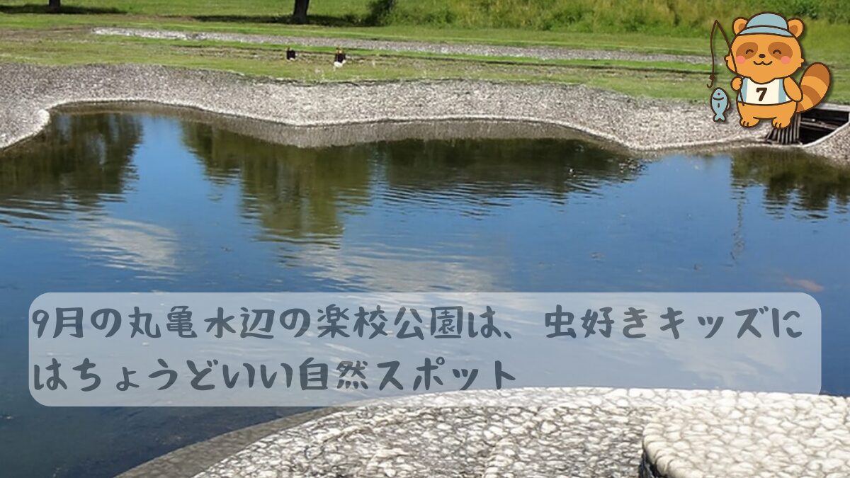 まだ残暑が残る9月ですが、真夏ほどの厳しさはなく、子どもと自然観察をするにはちょうどいい季節です。 丸亀水辺の楽校公園は人も少なく、のんびり遊べる穴場でした。