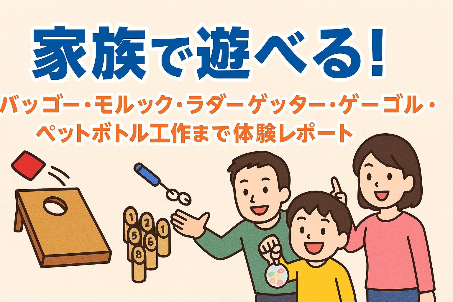 家族で参加したレクリエーションイベントで、 バッゴー(BAGGO)・モルック・ラダーゲッター・ゲーゴル・ペットボトルキャップ工作 を一気に体験してきました。