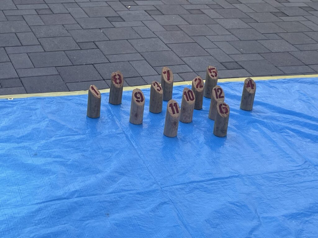 狙った番号を倒すのが意外と難しい。 「そこ狙うんかい!」とツッコミ合いながら楽しめます。 子どもは“投げるだけで楽しい”ので参加しやすいと思います。